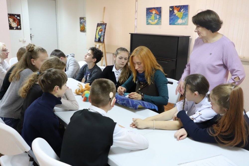 On October 25, 2022, in the Leonid Shchemelev City Art Gallery, an author's tour of the exhibition of felt paintings "Warm Palms" was held and a demo class from Irina Kolesnikova was held for students of the Zhdanovichi Special Boarding School as part of the social art project "Healing by Art".