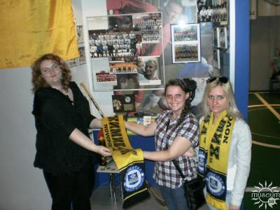 Все были увлечены беседой с Владимиром Леонардовичем. А Анна и Екатерина рассказали, как становятся фанатами, продемонстрировали "кричалки", чем "завели" присутствующих, и подарили музею шарф болельщиков "Химик-СКА". Для сотрудников музея такой дар стал приятной неожиданностью.